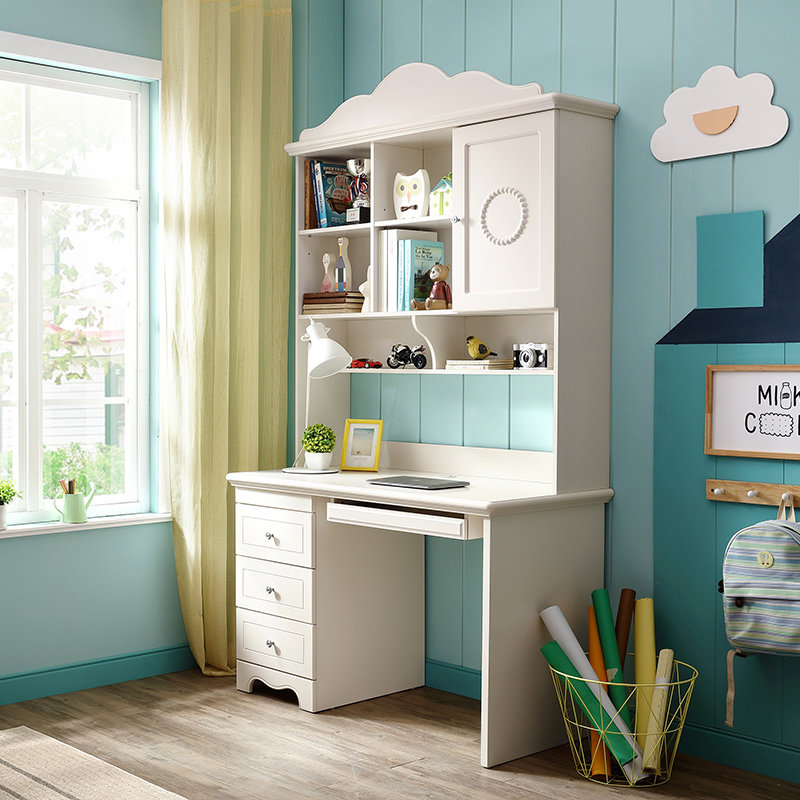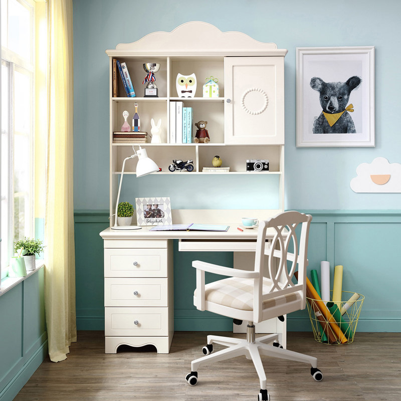 Lin's Wood Children's Desk Bookshelf Combination Girls Boys Modern Minimalist Home Desktop Computer Desk 818