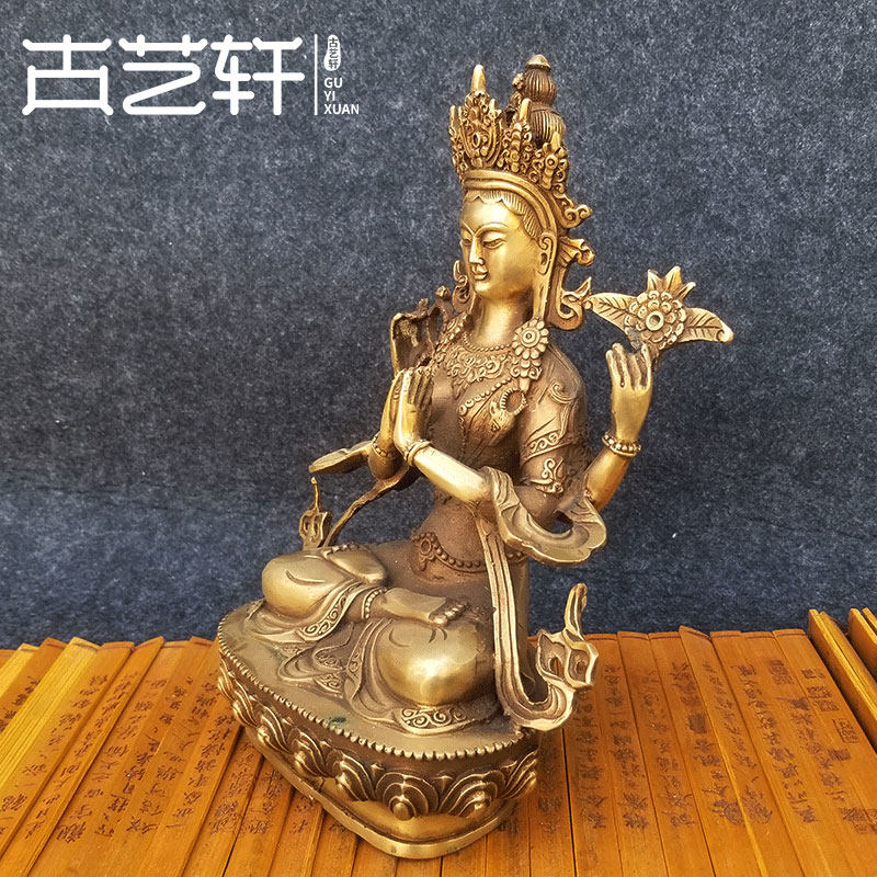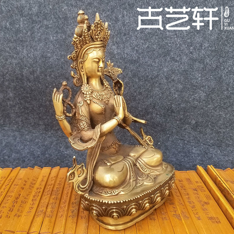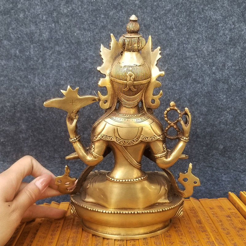 Palace - Tibetan Buddha - statue of pure copper - four arms - bodhisattva seven inches Nepalese mother