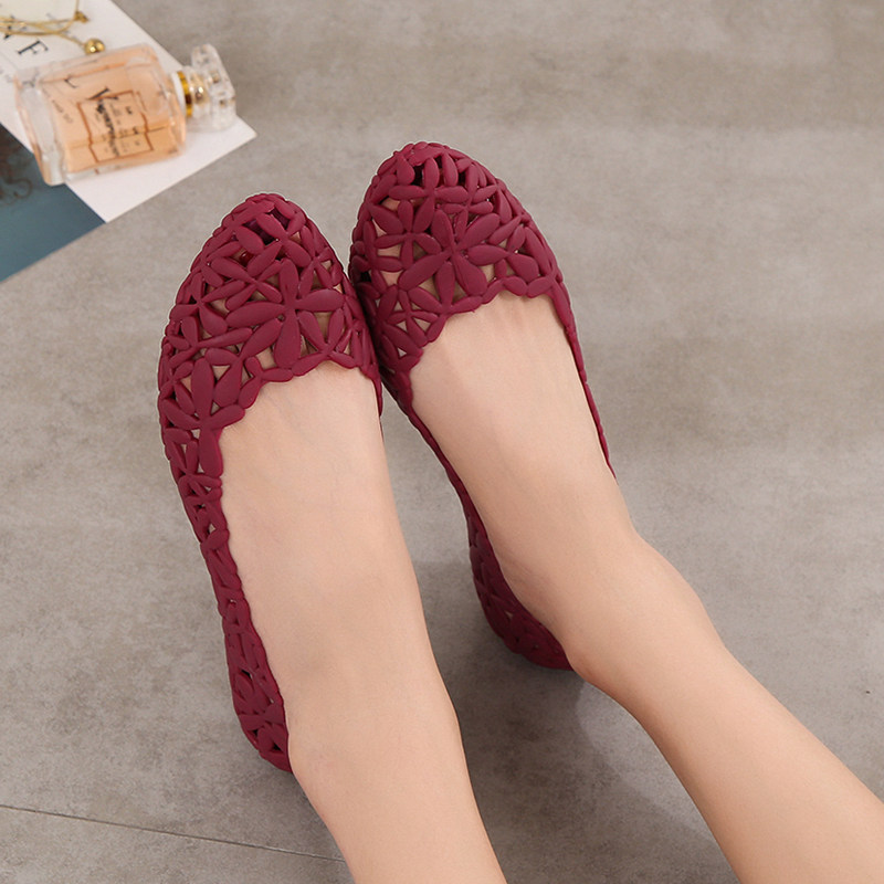 Four Seasons Leisure Fashion Simple Baotou Shallow Mouth Hollow Plastic Jelly Sandals Fairy Wind Versatile Summer Non-Slip Flat Bottom