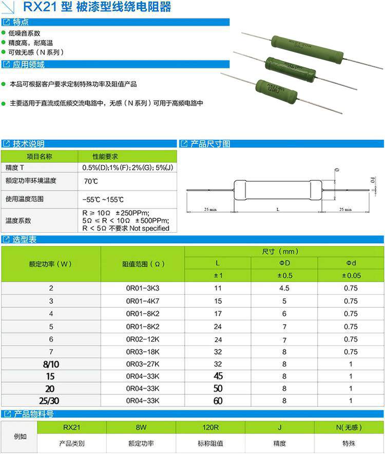 RX21 power ceramic load wire winding resistance 8W10W200R300R500R1K2K5K10K15K20K Europe