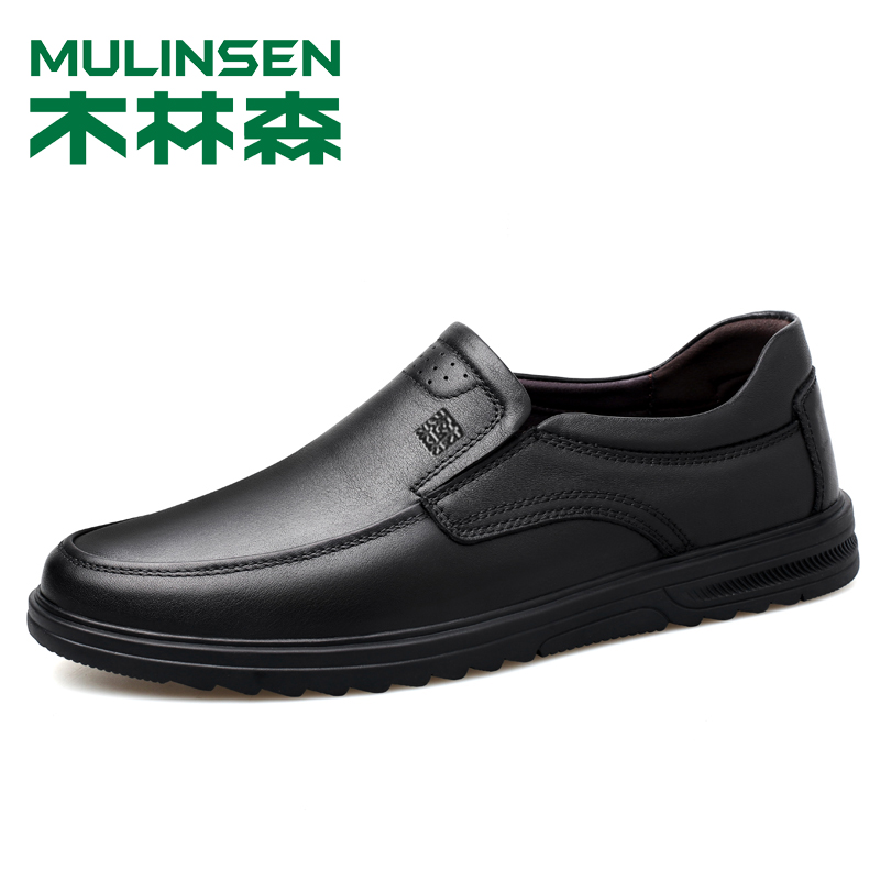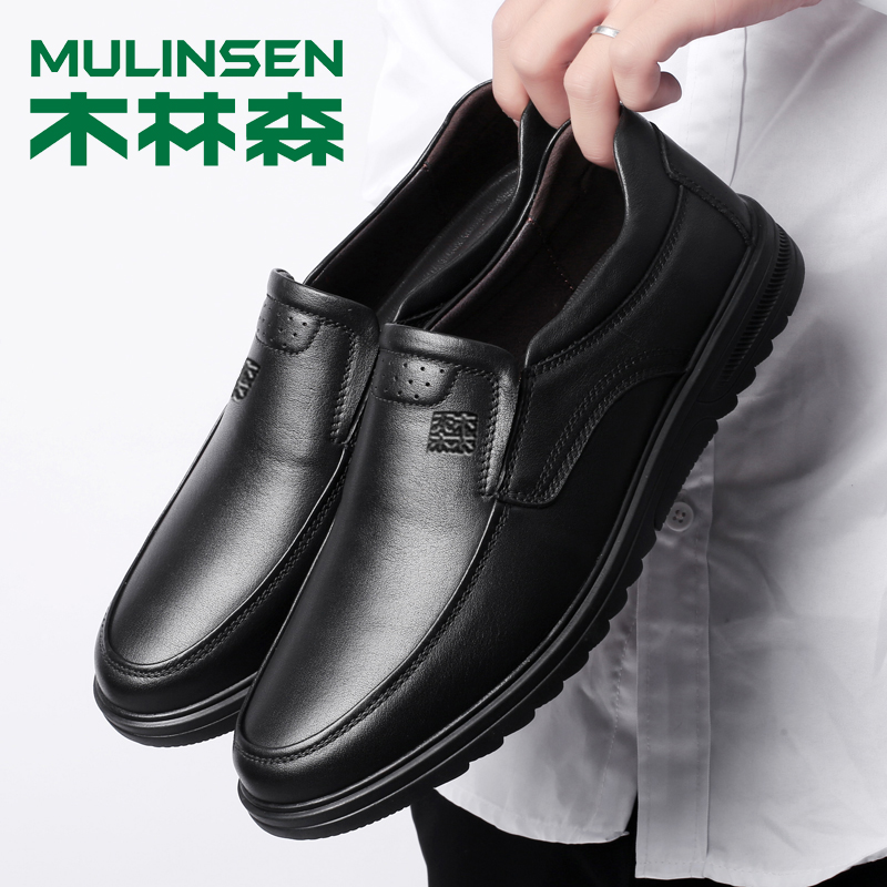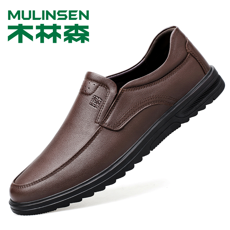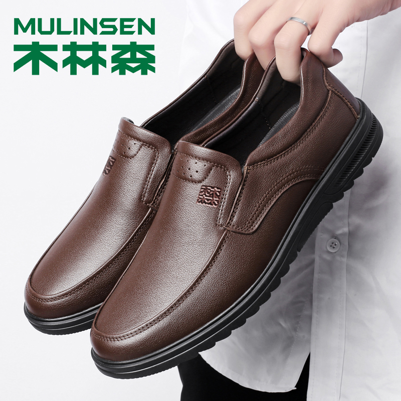 Mulinsen men's shoes breathable casual leather shoes men's leather soft bottom beanie toe top layer cowhide middle-aged and elderly dad shoes