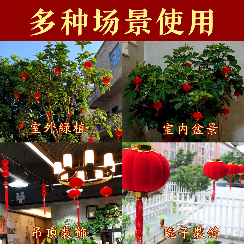 Small lantern hanging tree Indoor New Year scene decoration Outdoor decorative bonsai flocking red lantern pendant