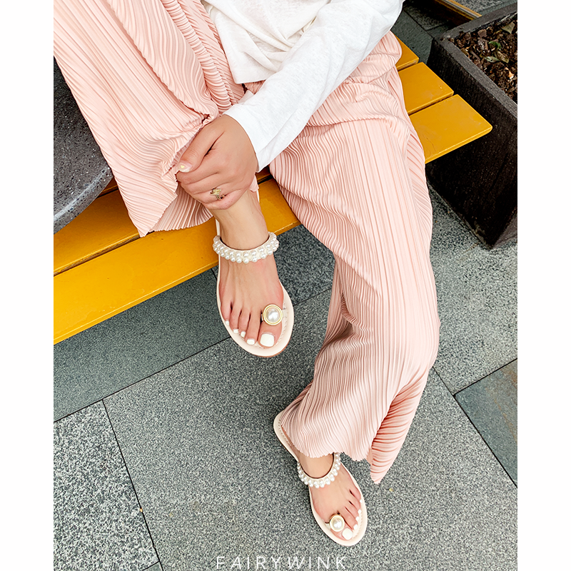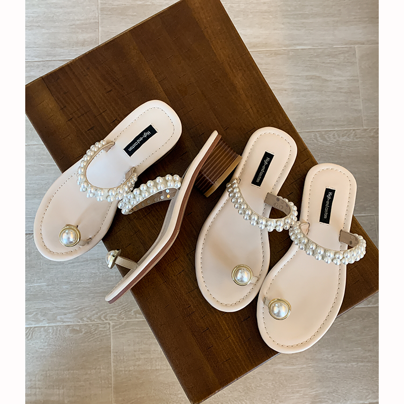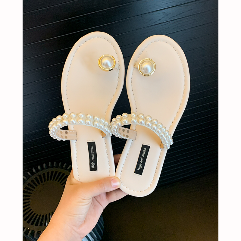 2021 summer new sandals thong French pearl Roman sandals pigeon egg thick heel beach slippers women's outer wear
