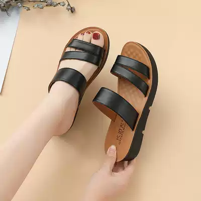 Mother slippers female summer wear middle-aged cool soft bottom elderly elderly 2021 New flat non-slip leather