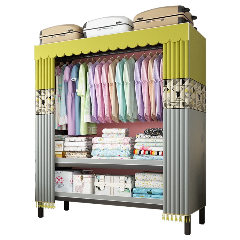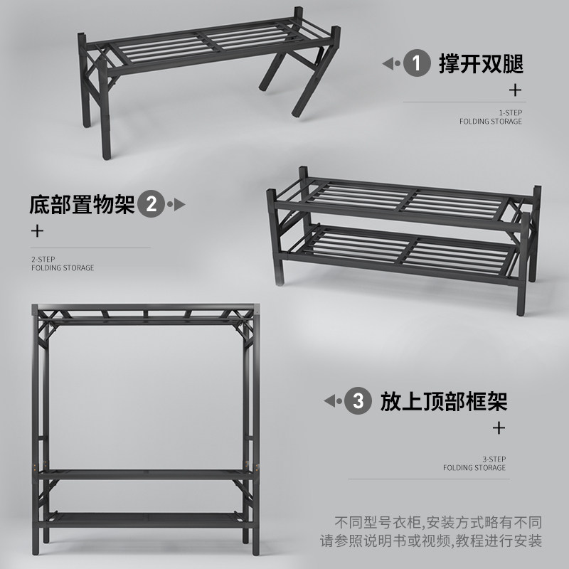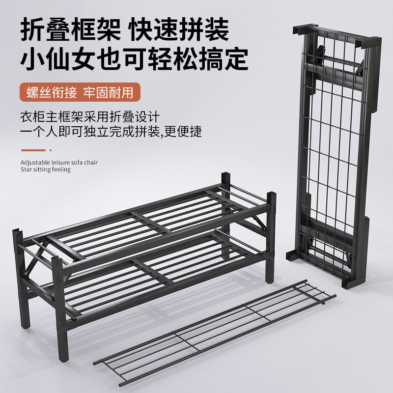 Installation-free wardrobe home storage wardrobe strong durable steel pipe reinforced folding rental room simple wardrobe