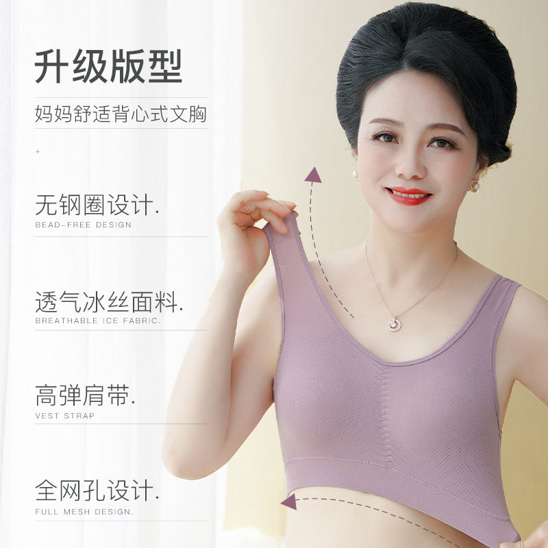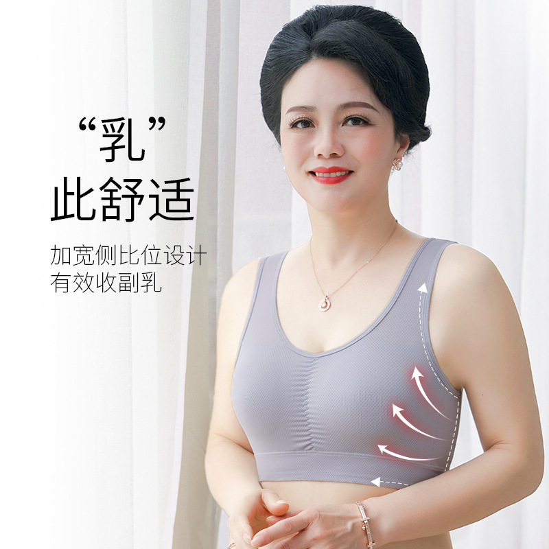 Mom Ice Silk Lingerie Woman No Steel Ring Vest Type Sports Bra Mid-Aged Woman Breathable Summer Thin bra-Taobao