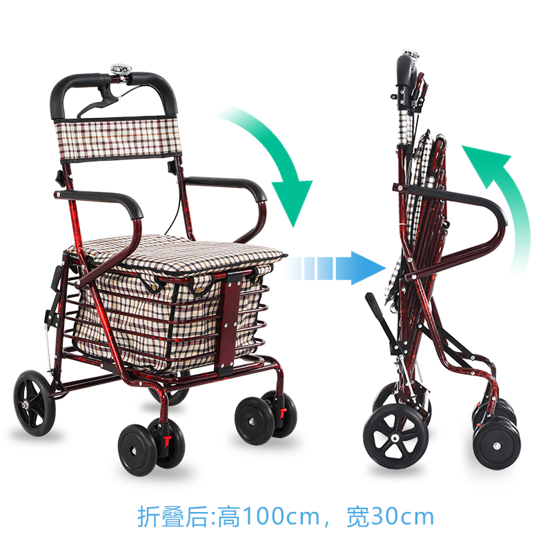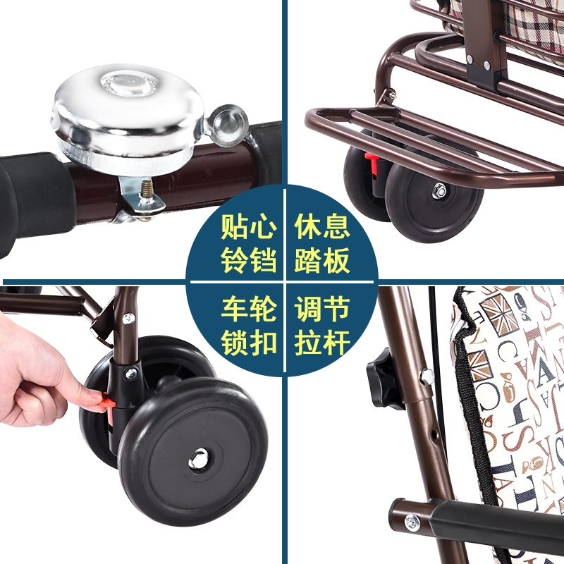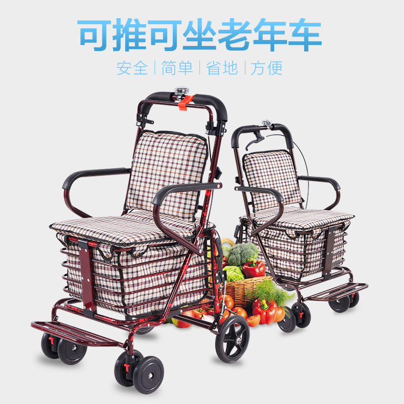 Elderly walking shopping cart can be pushed and seated with four rounds of elderly walking trolley folding household seats to buy vegetables small pulling cart