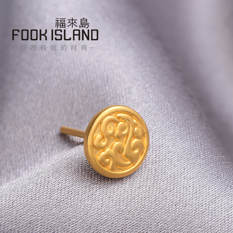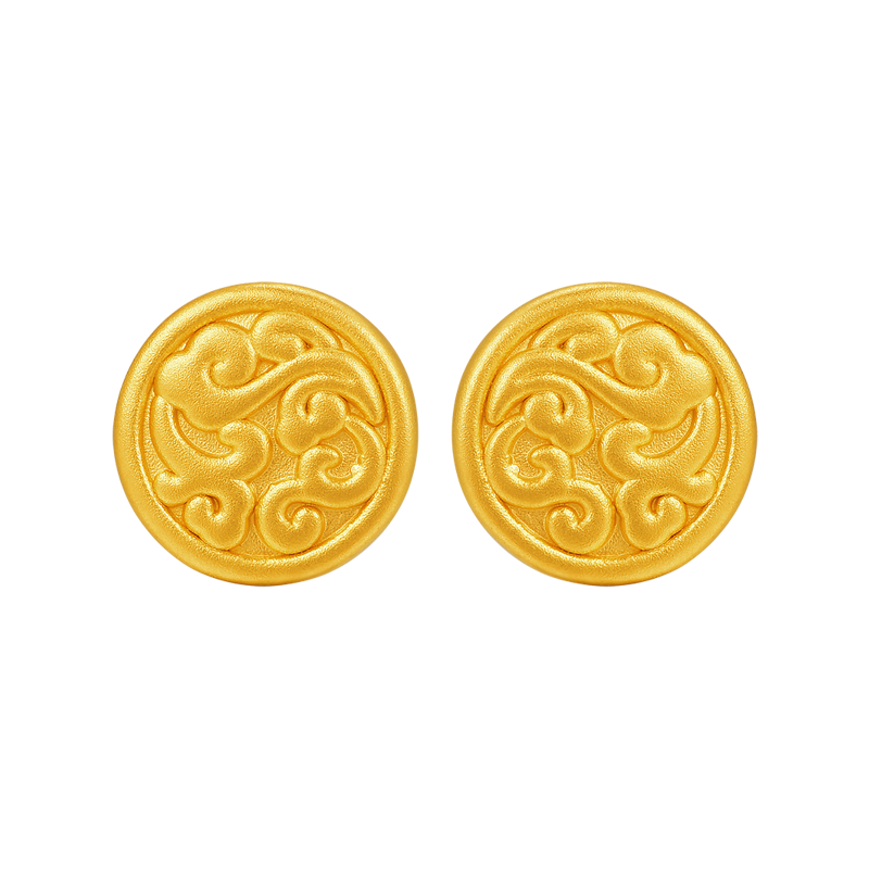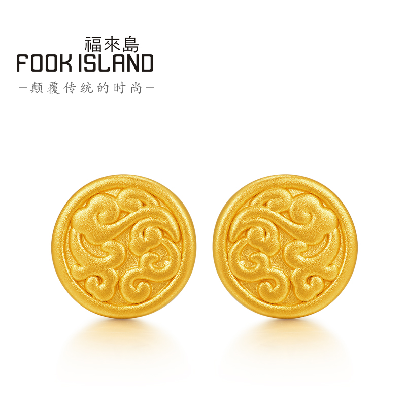 Fulai Island Pure Gold Ear Needle Gold Xiangyun Ancient Method Gold Earrings 3D Hard Gold Men's and Women's Ancient Method Ear Needle Pure Gold Earrings