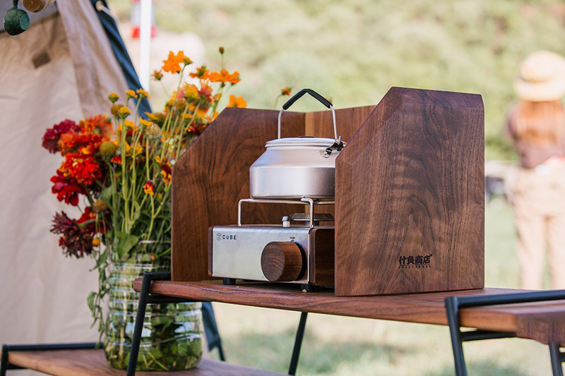 Shira shop solid wood card stove windproof plate CUBE black walnut windshield suitable for Iwatani Sengoku kovea