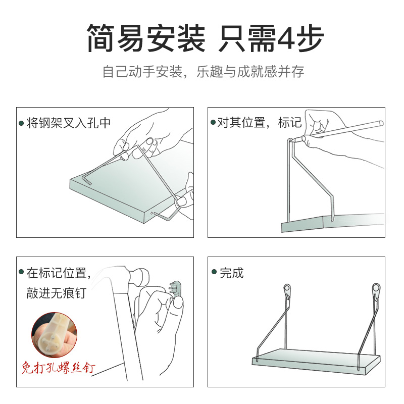 Wall shelf Hole-free kitchen living room decoration Wrought iron bedroom bookshelf wall powder room word partition
