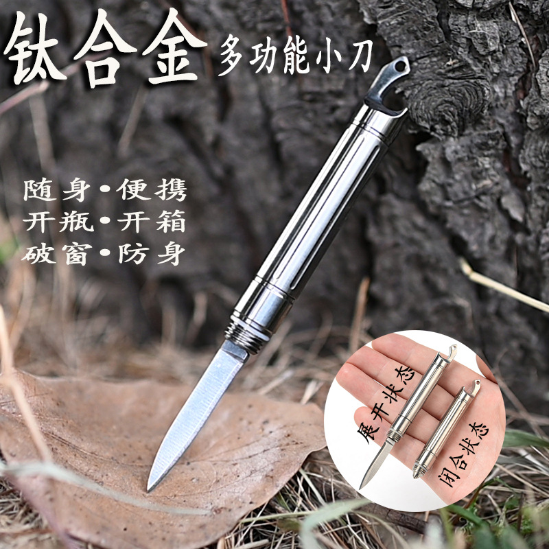 Titanium alloy multifunction small knife mini breaking letter knife with tungsten steel head bottle opener broken window external anti-body knife