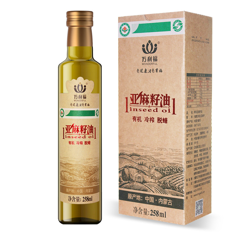 Inner Mongolia Native Organic Linseed Oil Fresh Cold Pressed Grade Linseed Oil Frozen Dewaxing Process 258ml