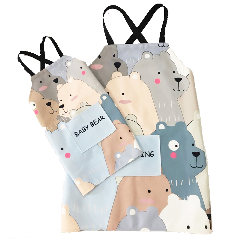 2020 Nordic home kitchen apron cartoon fashion female parent-child children cute Japanese oil-proof housework cotton and linen