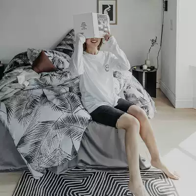 Bed four-piece cotton cotton 60 simple Nordic style light luxury style sheets dormitory three-piece set of supplies D