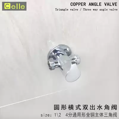 Export CE Europe and America all copper 4-point angle valve double water outlet tee four-point Wall ultra-short angle valve universal hot and cold water valve
