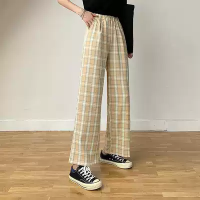 Blue plaid pants women's pants loose straight vertical high waist thin 2021 new spring and autumn and summer casual wide pants