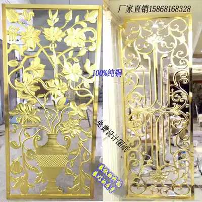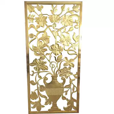 Pure copper relief hollow European-style screen villa entry entrance background wall metal lattice aluminum plate rose gold partition