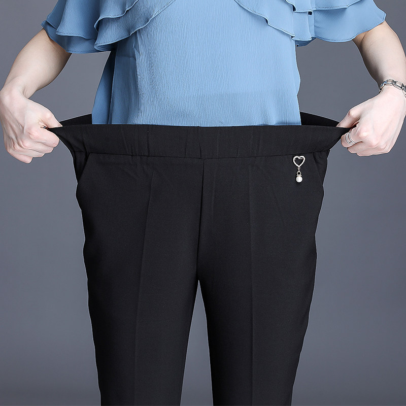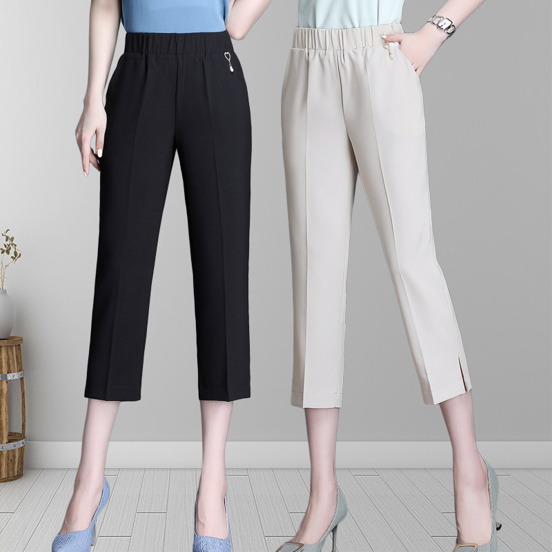 Mother pants summer 7-7 - cent loose mother-in-law elastic thin middle-aged and old women high waist straight tube grandma pants