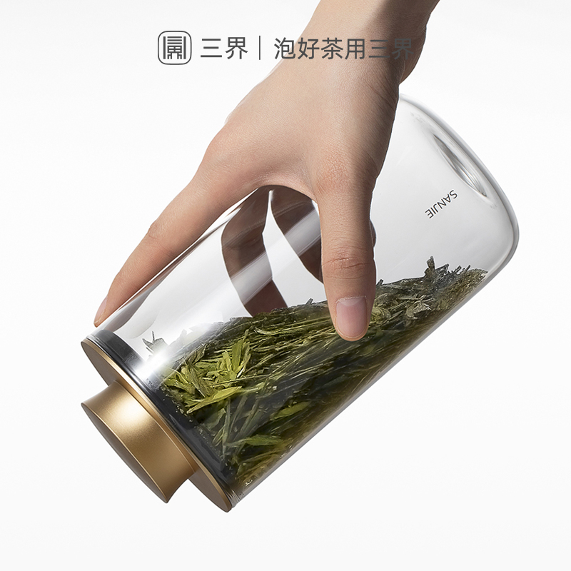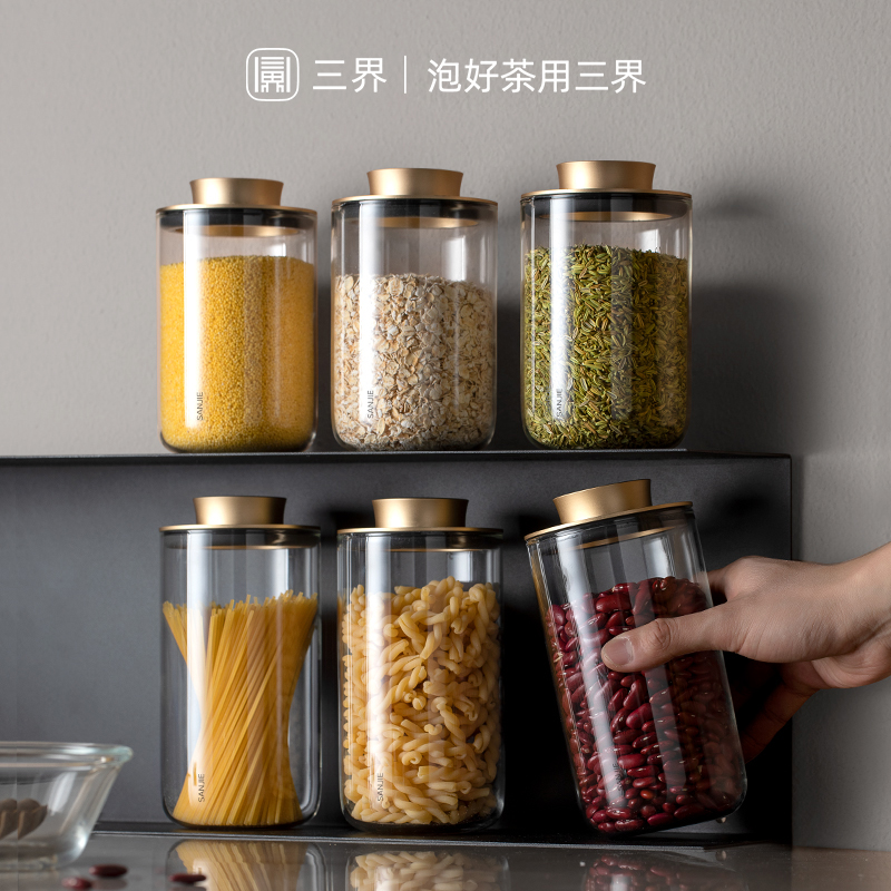 Sanjie tea set Glass tea can storage sealed can Whole grain food can Household with lid size storage bottle