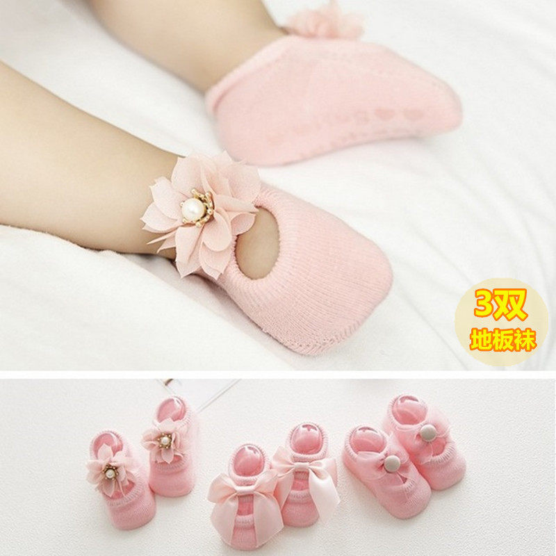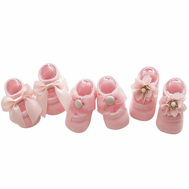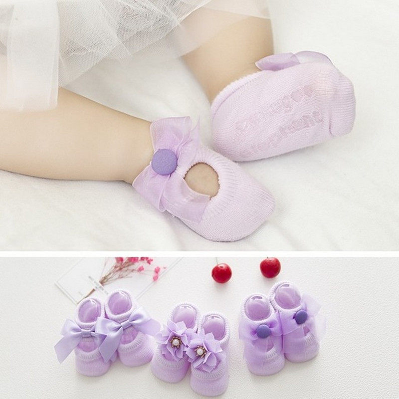 Spring, summer and autumn infants and young girls 0-3-6-12 months bowknot princess non-slip boneless short boat pure cotton socks