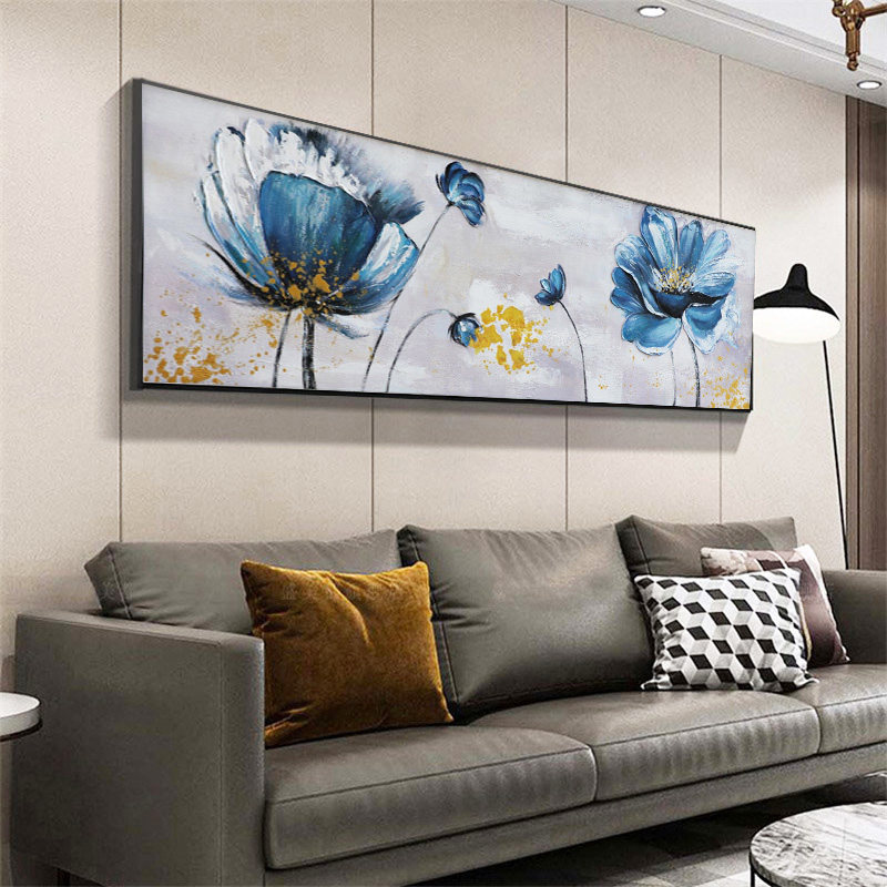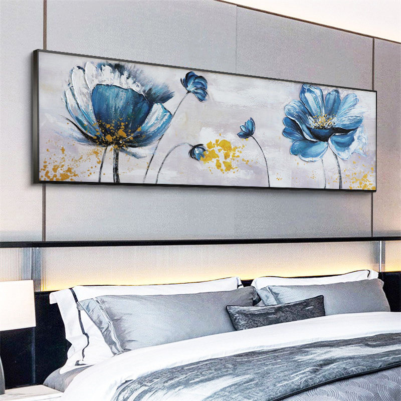 Pure hand painted oil painting living room Flowlotus decoration painting sofa background wall hanging cross-section new Chinese bedroom murals