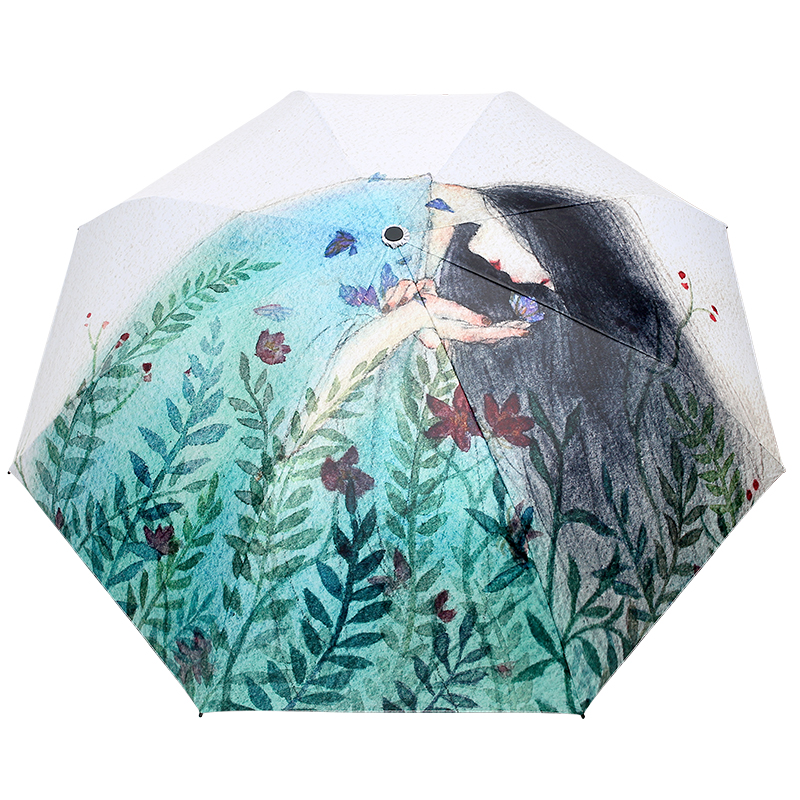 (Bo market cultural and creative) Shanhaijing three-fold sunny umbrella small fresh original illustration creative Chinese style