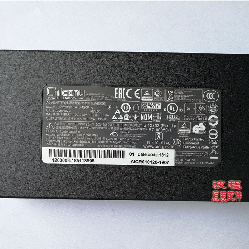 Chicony group light A15 -120P1A Shenzhou laptop charger power supply adapter 19V6 32A