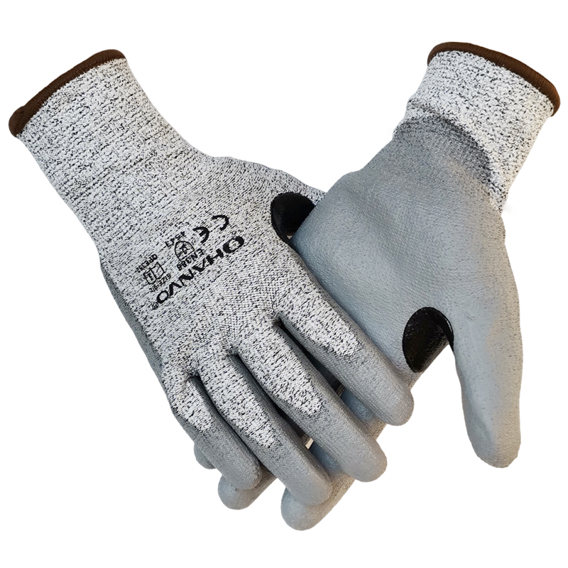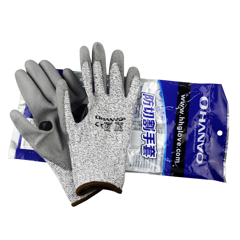 Henghui QPE352PU coated adhesive thin section 5 level anti-cut gloves abrasion-proof and scratch sheet metal glass machinery processing