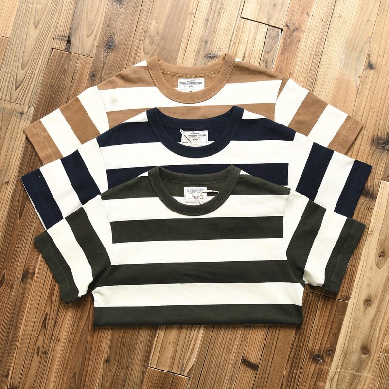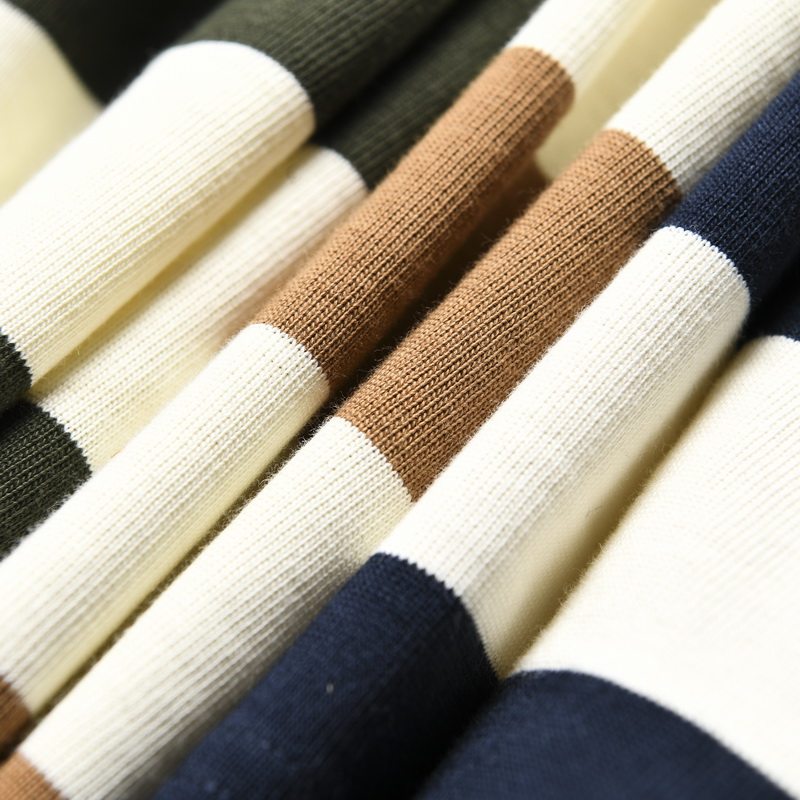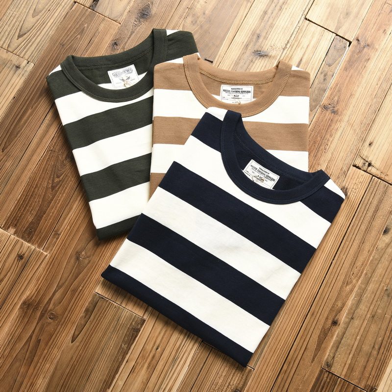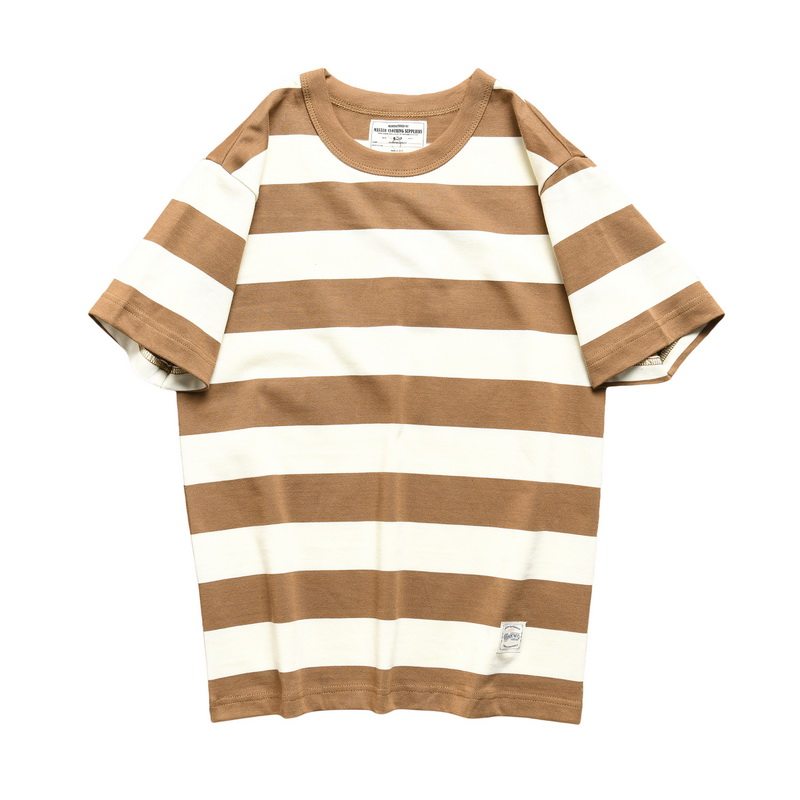 Retro Tide Wide Striped Foreign Trade Export Tail Single Stock Tide Card Cut Mark Summer Men's Pure Cotton Round Collar Short Sleeve T-shirt-Taobao