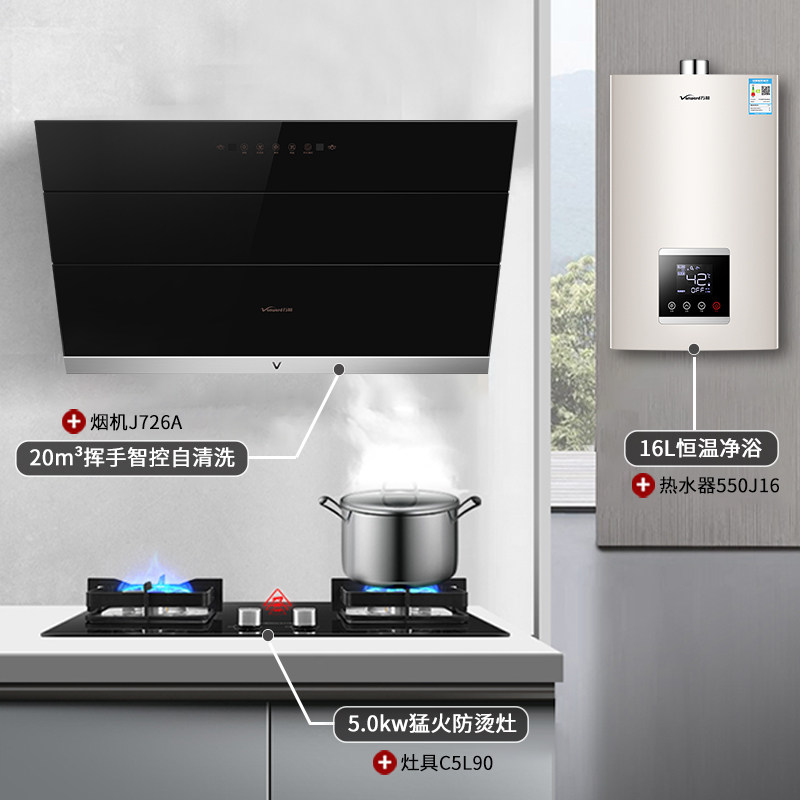 Wanhe range hood gas stove package household kitchen side smoking machine stove water heater set combination official website