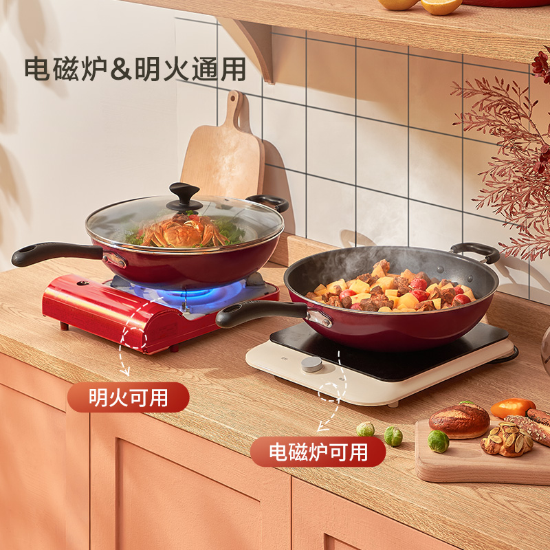 Supor non-stick wok wok household old-fashioned flat-bottom wok Induction cooker gas stove special less fume frying pan