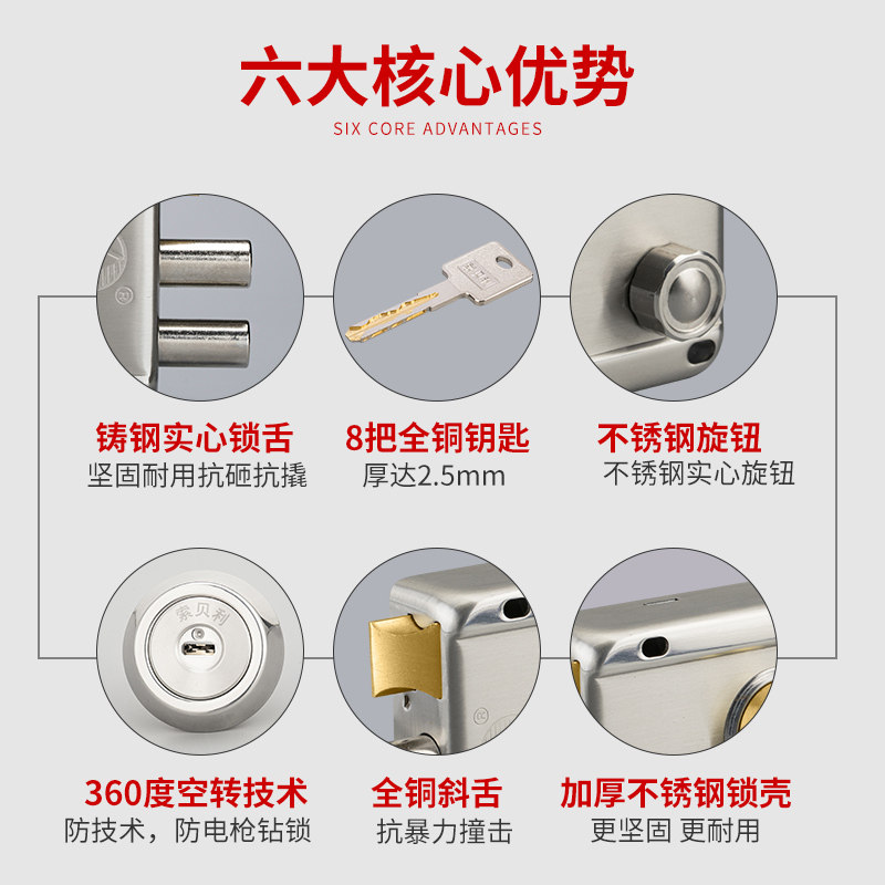 Stainless steel super C class old-fashioned anti-theft door lock Household idling lock Door door door wooden door iron door universal lock bd