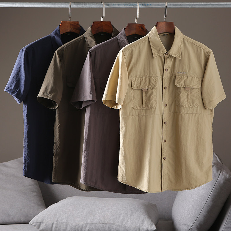 With large size OUTDOOR FUNCTIONALITY TECH OUTLET EUROPEAN AND AMERICA FOREIGN TRADE MEN'S FACTORY CUT MARK TAIL GOODS SHORT SLEEVE SHIRT