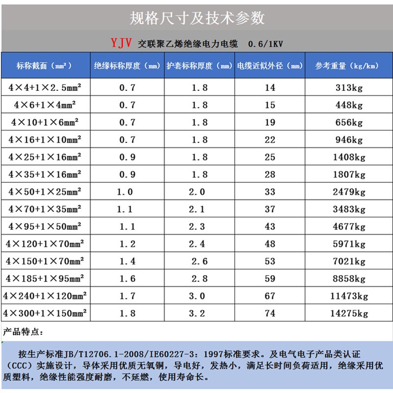 Starting sail YJV 4x4 6 10 16 16 to 300 square 1 Core Power cross-linking cable pure copper country Label detection
