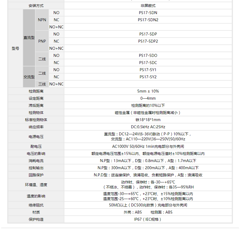 China's Shanghai-industrial metal induction PS17-5DN close to switch NPN third-tier normal open 12V24V square sensor