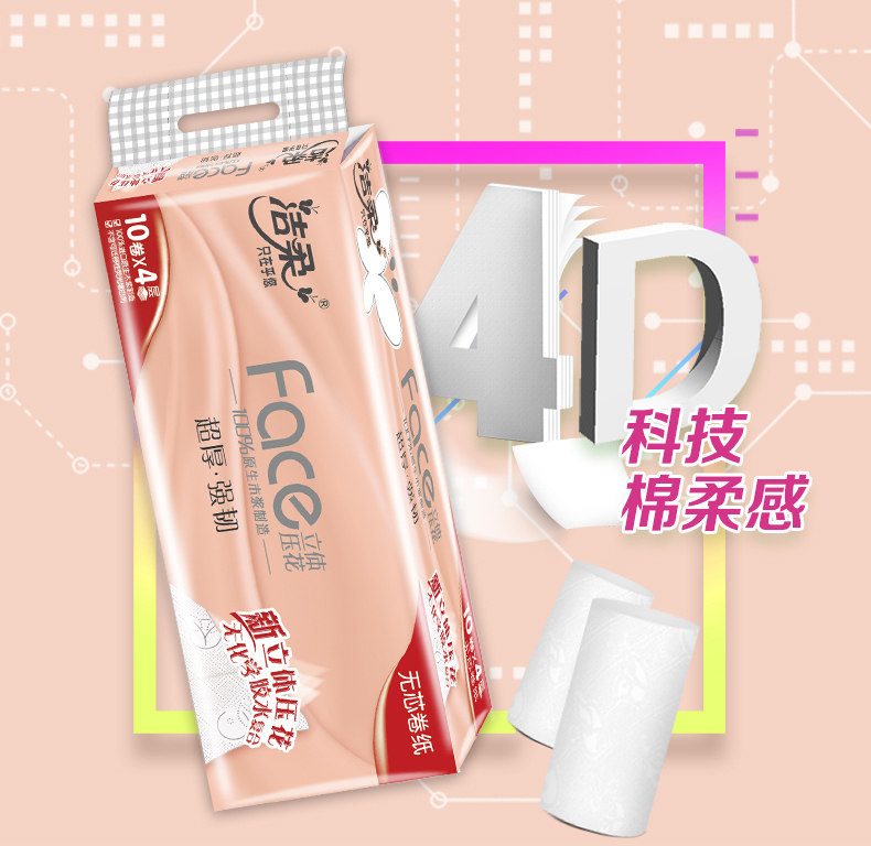 Clean and soft toilet paper No core toilet paper toilet paper 4D Cubed press patterned paper towels 70g 4 floors 1 lift 10 rolls of family clothing