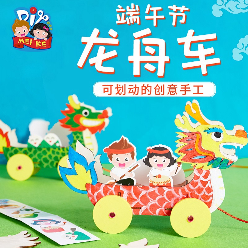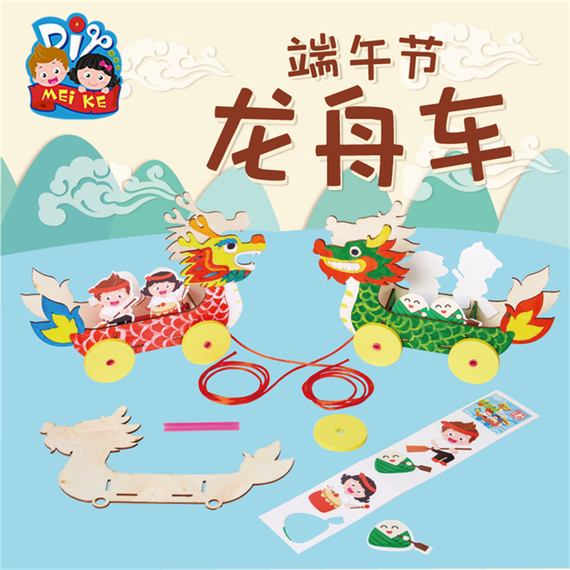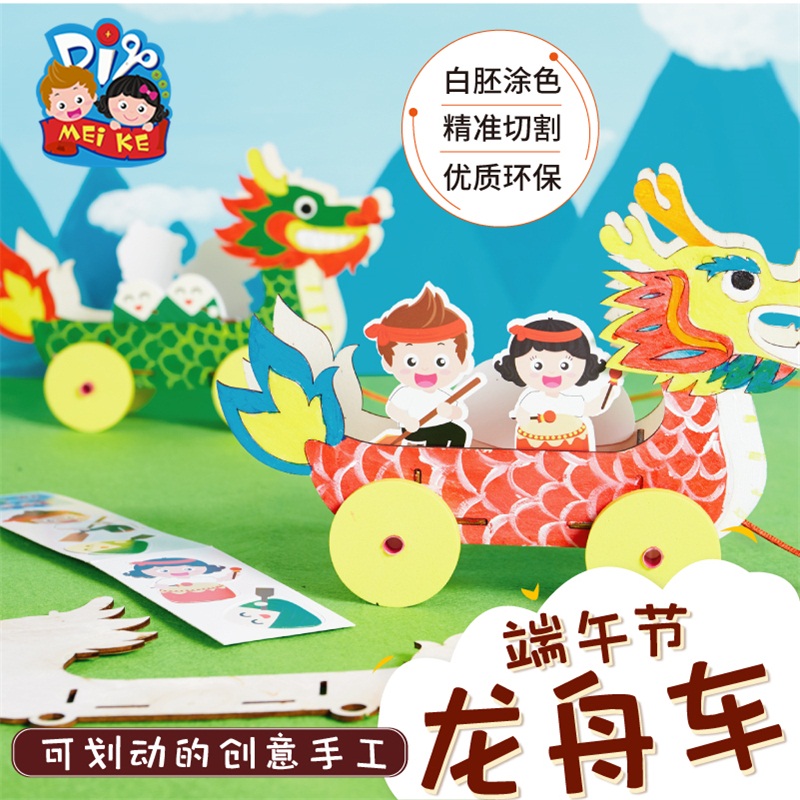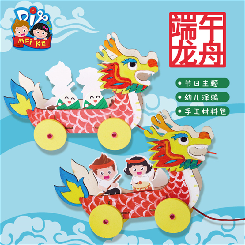 End of the Dragon Boat Festival Artisanal Diy Wood Painted Dragon Boat children's creative adhesive to make toy kindergarten material