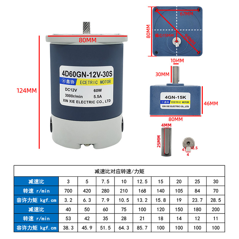 DC gear motor 12V24V positive and negative small motor 60W low speed adjustable speed fry machine Small motor