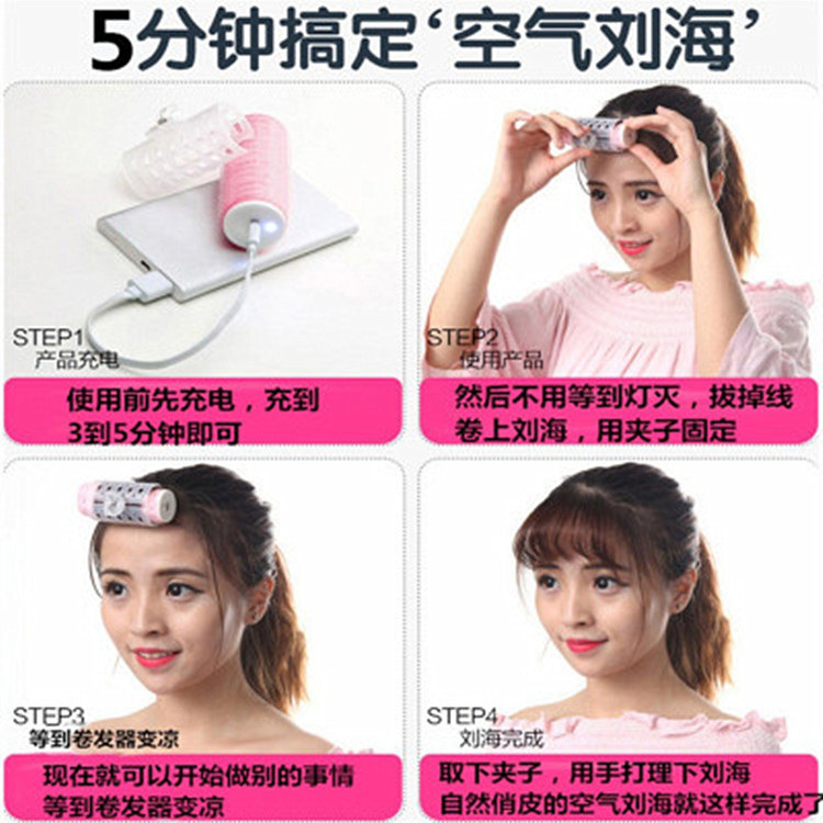 Air bangs curling barrel charging USB lazy curler inner buckle bangs fixed artifact to take care of heating set