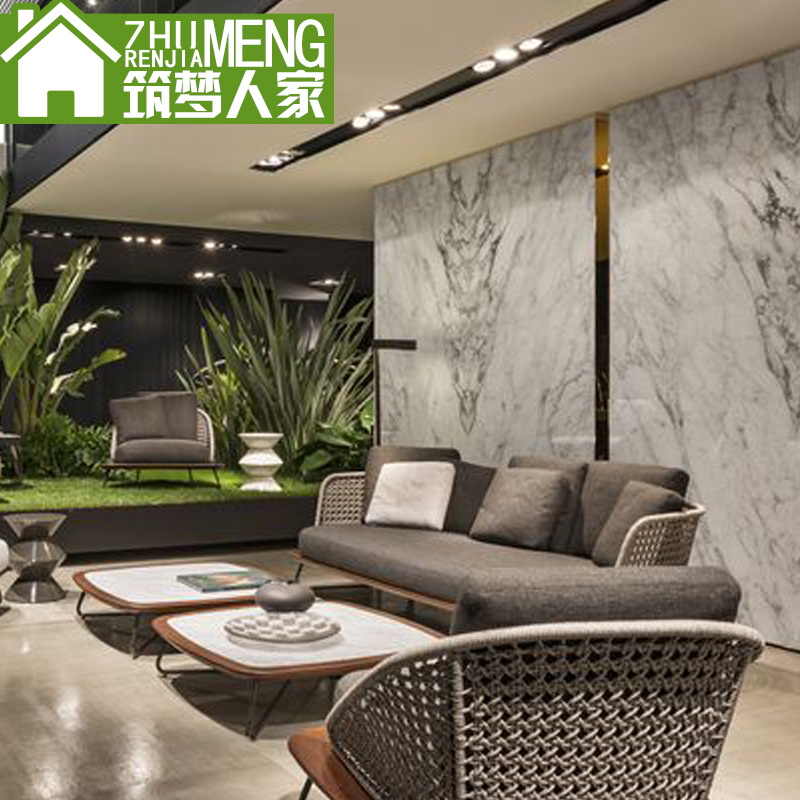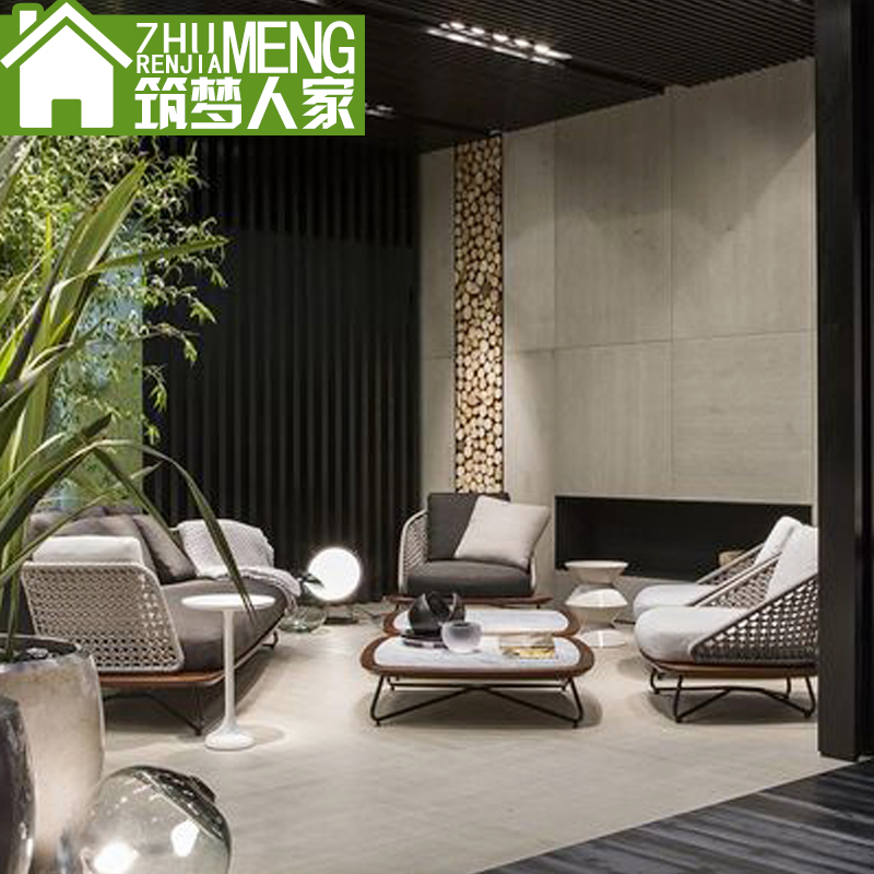 Dream building designer villa hotel clubhouse outdoor leisure furniture style rattan solid wood teak rattan sofa