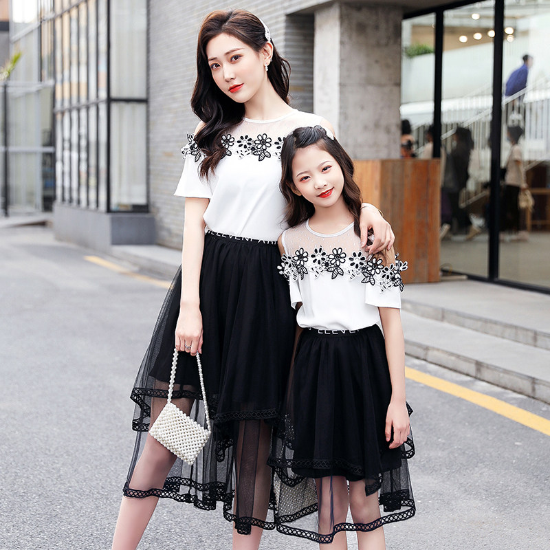 High-end parent-child dress summer suit skirt Korean version 2023 new trendy western style net red mother and daughter dress gauze skirt