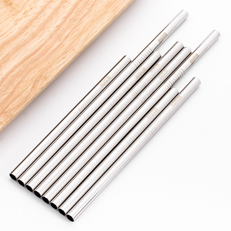(8mm caliber) 304 stainless steel straw environmental protection portable recycling household heat-resistant metal drinking straw