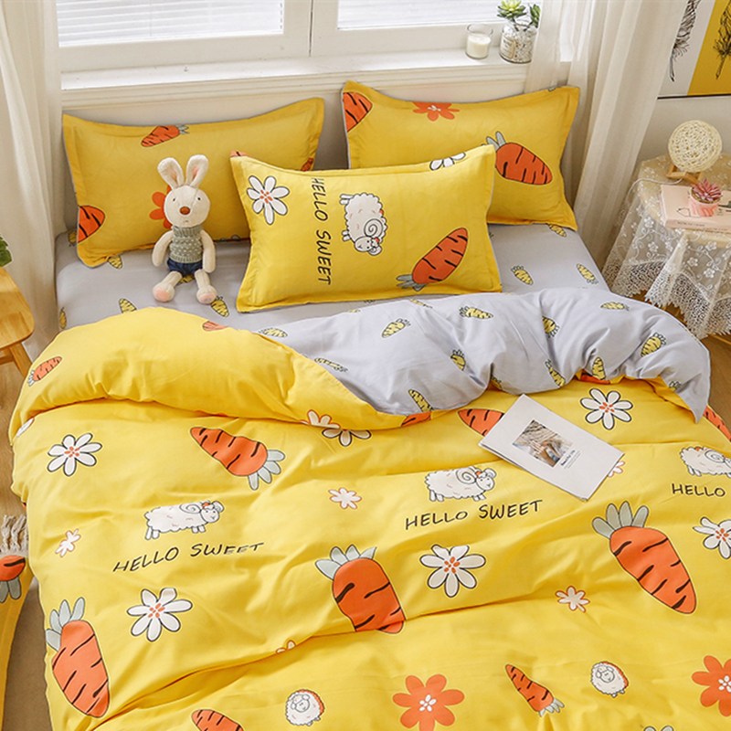1 2M bed three-piece set(duvet cover 150*200cm sheets 160*230cm) 1 5M bed four-piece set(duvet cover 150*200cm sheets 200