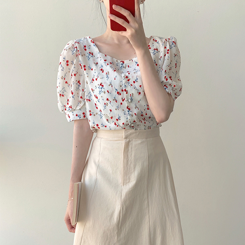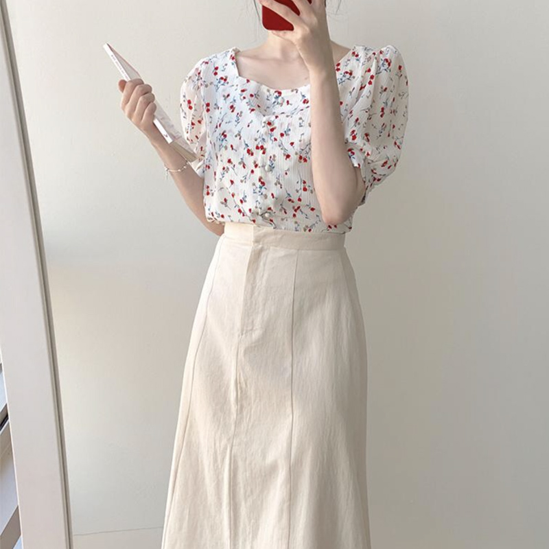 2021 new female Summer Salt skirt floral foreign style Hong Kong style retro chic two-piece dress Spring