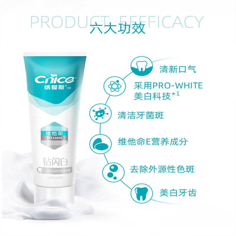 Nice diamond flash white toothpaste 95g 3 sticks to remove stains, whiten and remove yellow tartar, brighten and freshen breath