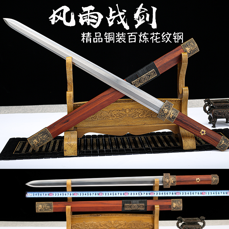 Longquan Yu's handmade pattern steel eight-sided Han sword long version self-defense knife cold weapon sword not edged