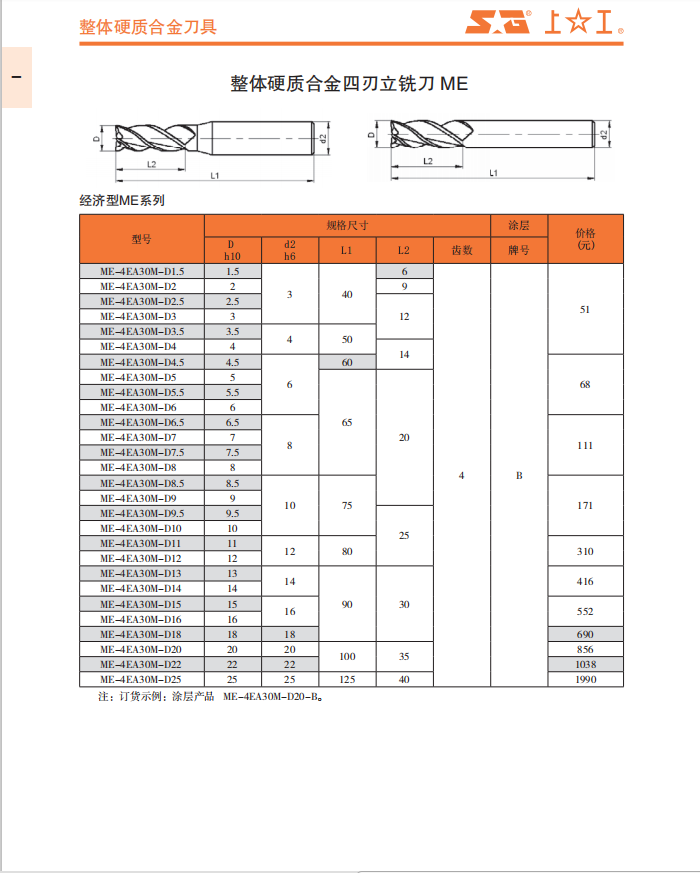 Upper work overall alloy milling cutter tungsten steel milling cutter four blades ME-4EA30M-D2-3-4-5-6-8-10-12-25