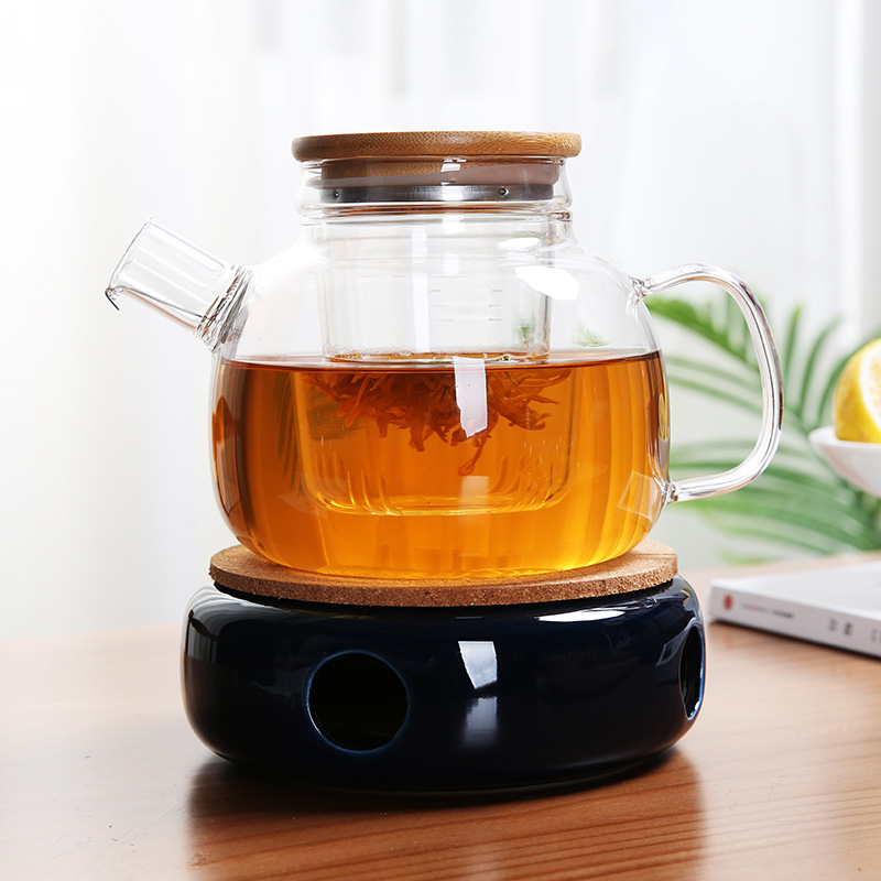 Light luxury fruit teapot suit household afternoon tea thickened glass teacup candle heating steam tea oven transparent tea set