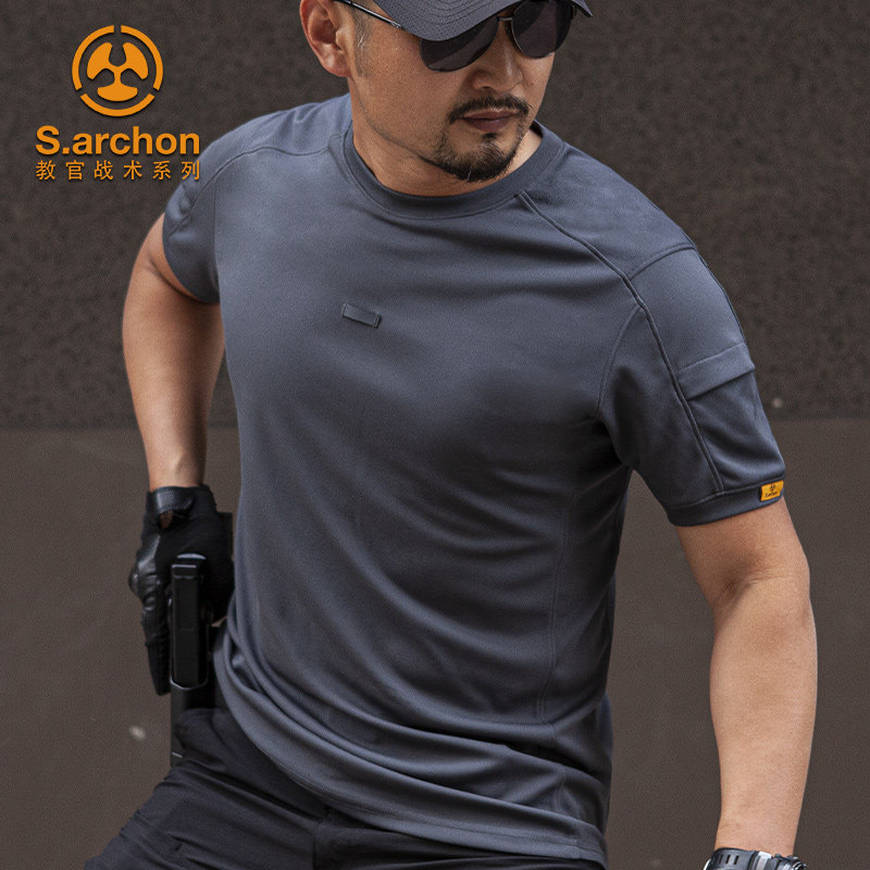 Summer Archon Tactical quick-drying t-shirt Men's outdoor sports Round neck stretch short sleeve Military fan half-sleeve quick-drying