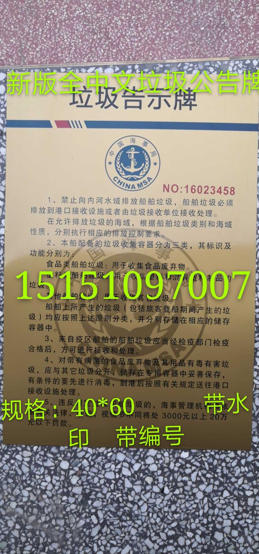 2019 New Edition Marine Inland Waste Billboard Maritime Bureau Authentic Directive sign All Chinese Copper Billboard